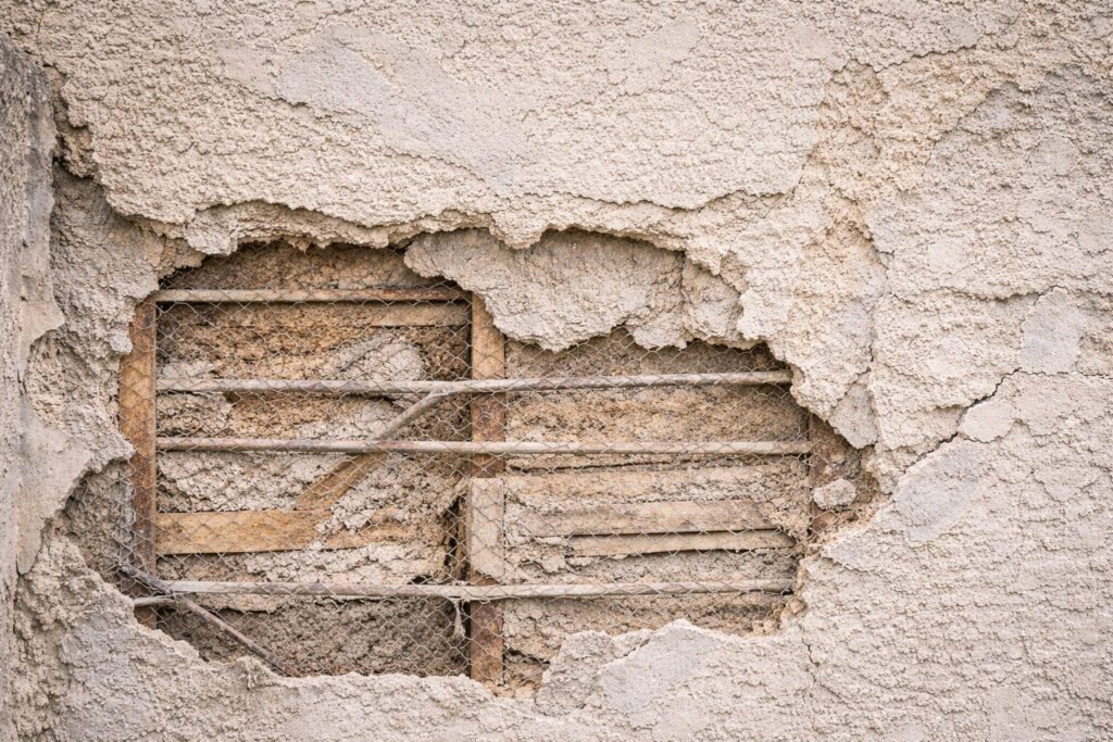 - Impact damage or holes in stucco walls
